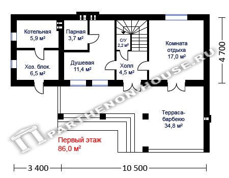 Проект бани-гостевого дома ПА-87Б: 87,00 кв.м