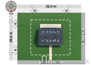 Минимальные размеры участка: 22,3 x 20,5 м.